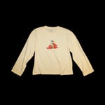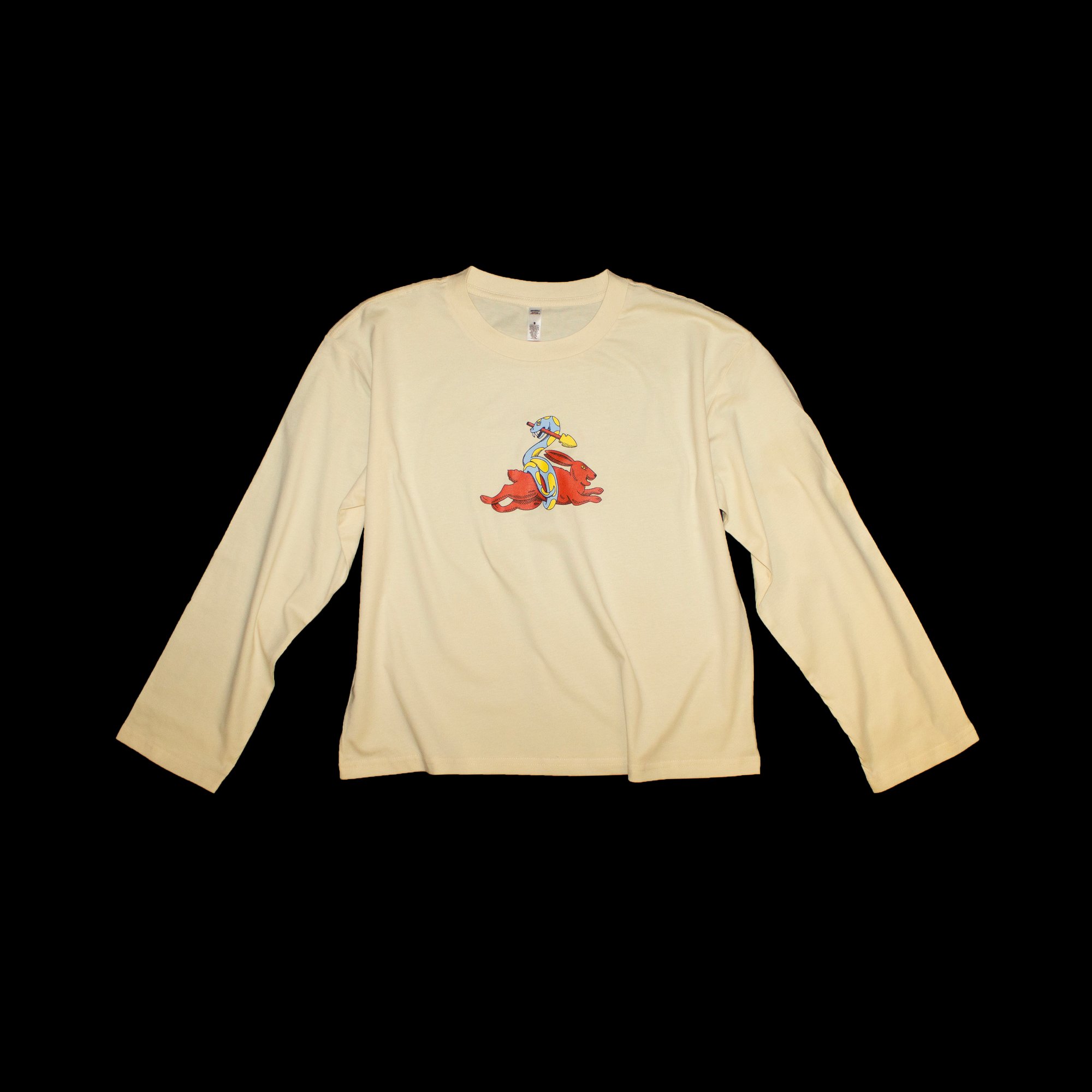 Super soft cotton long sleeve tee with silk screened custom Maddie Fischer rabbit logo. Women's sizing, but can be worn unisex for a boxier, cropped fit. Runs true to size, will shrink upon first wash.